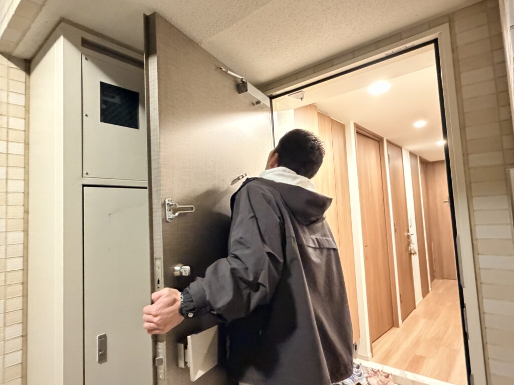 玄関のドアが外れた原因は、以下のアクシデントでした。