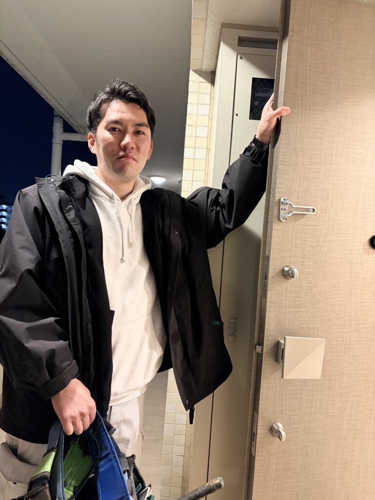 先日、横浜市都筑区のマンションにお住まいのお客様から、「突然玄関のドアが外れてしまった!」と大変お困りのご連絡をいただき、急行してまいりました。